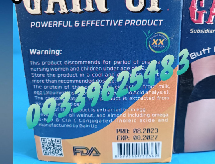 قرص چاقی باسن گین آپ برند دو ایکس یک محصول تحت نظر FDA است که به منظور بهبود حجم و فرم باسن تولید شده است. این مکمل مخصوصی راه اندازی میکند که در طول هفته اول مصرف، شروع به فرم دهی و افزایش حجم باسن میکند. قدرت این محصول در تسهیم توده چربی در باسن و تقویت ماندگاری و فرم آن میباشد.